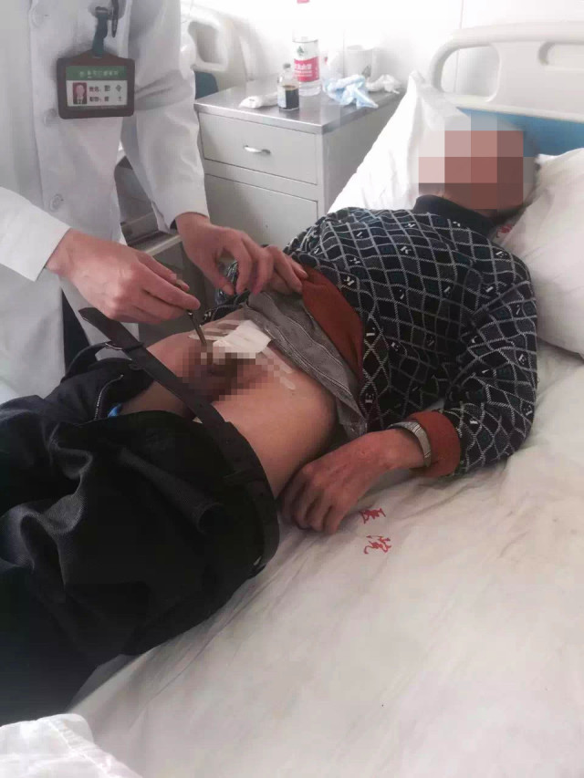 3.22日,我院泌尿科收治了一名患者,一说起他的名字,医护人员无人不知,无人不晓。 这名患者男性,81岁,入院前6年出现排尿困难、血尿及排尿中断,在外院治疗,治疗后仍无好转。又因家庭贫困,就医困难,在家自行用金属丝扩张尿道,也曾多次因尿路感染、尿道狭窄来院求助。基于家庭条件,一直未住院治疗,也未曾考虑手术。每次到医院他都只有五十块、二十块钱,羞涩地呵呵直笑,医生也就象征性收一点,很多时候都不够材料费和药品费。一来二往,医生对他的家庭条件了解了,也就不再收费。反反复复近五年的时间,这名患者跟大家都熟悉了,也建立了深厚的感情,大家就送了个亲切的外号给他——“钢丝哥”。 这次,患者由于尿道狭窄、膀胱多发性结石,并下腹胀痛不适再次来到医院求助,刘学副主任医师通过检查发现,保守治疗已无意义,还会给患者造成更大的痛苦,必须进行手术。但是患者家庭条件限制,实在是没有钱进行手术,在与患者及亲属多次沟通交流之后,医院决定免除患者自负部分的所有费用,为患者进行手术。 3.26日,患者在局麻下行了膀胱穿刺造瘘术,进行膀胱冲洗,控制泌尿系感染,择期手术。